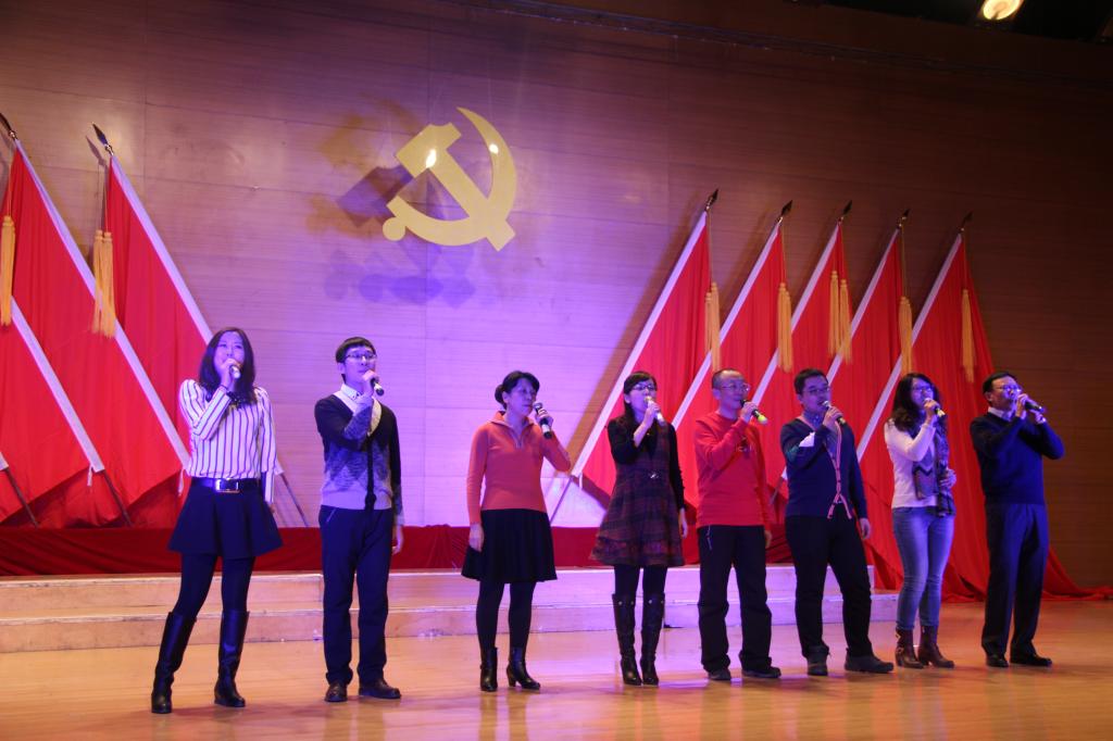 晚会在一曲《唱支山歌给党听》中拉开了帷幕,伴舞时而轻盈优美,时而活力四射。晚会分为三个篇章,第一章飘扬的旗帜,电气党支部的《国家》情深意切,《呼儿嘿呦》轻快有力,团总支的《大中国》激情澎湃,唱出了当代老员工对祖国的深深热爱和赤子之心。第二章峥嵘的岁月,由各党支部书记合唱的《打靶归来》再现了解放军的艰苦奋斗和苦中作乐的卓绝精神。舞蹈《请到草原来》让大家领略到蒙古族的豪迈和热情,办公室的《走向复兴》唱出了所有中华儿女的中国梦。来自通信党支部的《明天会更好》将晚会推向高潮。最后一章复兴的征程,在《保卫黄河》汹涌激昂的旋律中,舞动出共产党勇贯三军的气势。电信党支部的《中国军魂》唱出了中国军人的铮铮铁骨和不屈意志。在《歌唱祖国》振奋人心的歌声中,晚会落下帷幕。