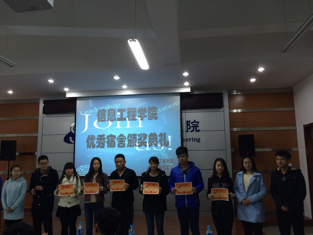 2015年11月8日上午,由公司员工会生活部举办的“信息工程公司优秀宿舍颁奖仪式”在逸夫楼F302成功举行。优秀宿舍代表及全体员工干部参加了本次活动。