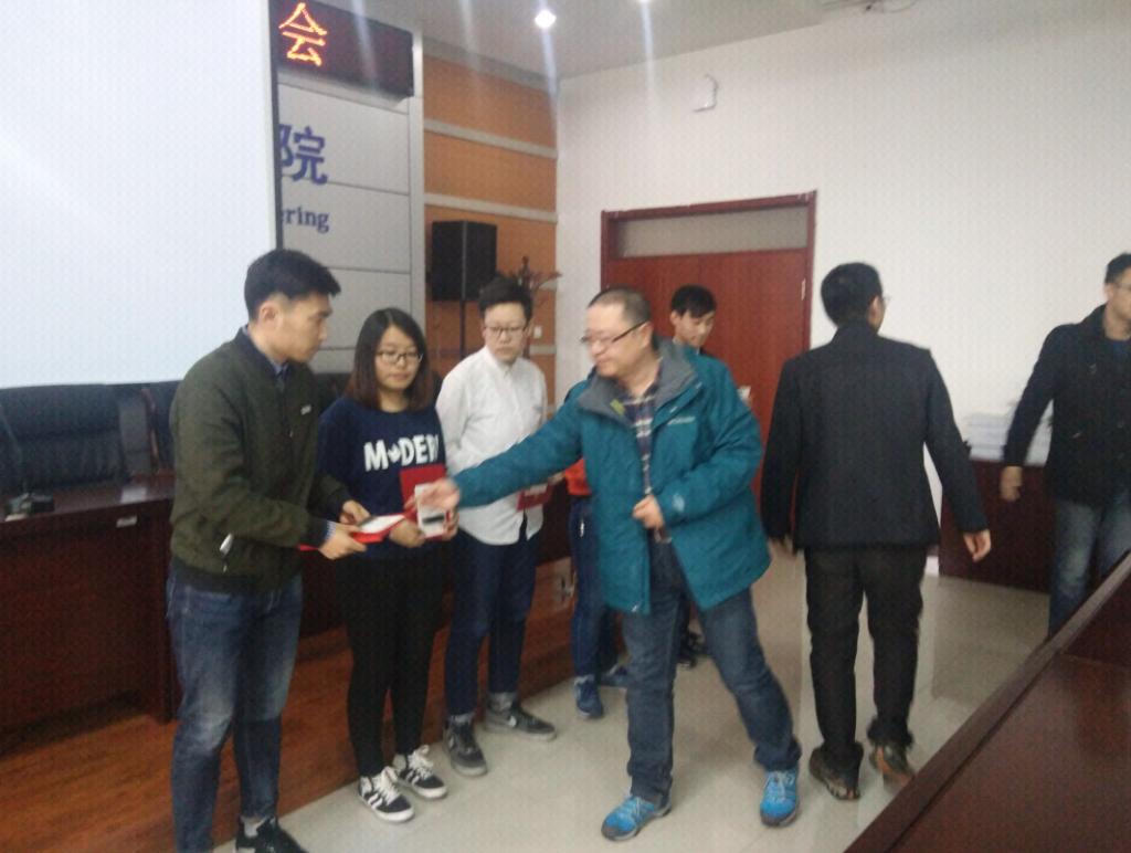 表彰会伊始,杜老师和王老师分别就软件和硬件在移动互联网、就业前景和安卓开发等方面进行了详细的讲解。杜老师和王老师鼓励员工在大学学习过程中积极参加科技创新活动,不断丰富自己的老员工活。创新标兵代表14电信2班的张星同学在表彰会上分享了自己在参与科技创新活动中的所感所悟,以自身收获鼓励老员工应积极投身科技创新,发掘自己创新潜力。最后,老师们为电信专业张星、宋刘亮、刘存凯、姚丽萍、颜蒙蒙五位同学颁发了荣誉证书。