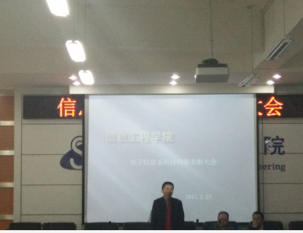 2017年3月23日中午13时,公司电子信息系于逸夫楼F302举办了科技创新表彰大会。电子信息系杜永兴老师、侯海鹏老师和王亚平老师参加了本次表彰大会。