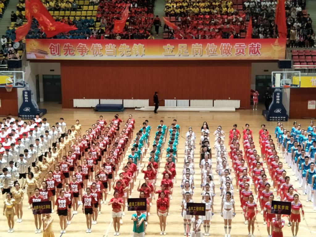 忙碌的学习没有抵挡队员的激情,激烈的竞争没有磨灭队员的信心。公司啦啦操队员们穿着青春气息的服装,迈着铿锵坚定的步伐自信上场。整齐划一的动作,变换迅速的“SIE”队形显现出的是信息精神,啦啦队队员们响亮的口号、卖力的呐喊,配合着飘荡人心的院旗,激发出每一个信息学子的自豪。最终,努力奋进的信息队获得个人展示第六名,团体第七名的好成绩。