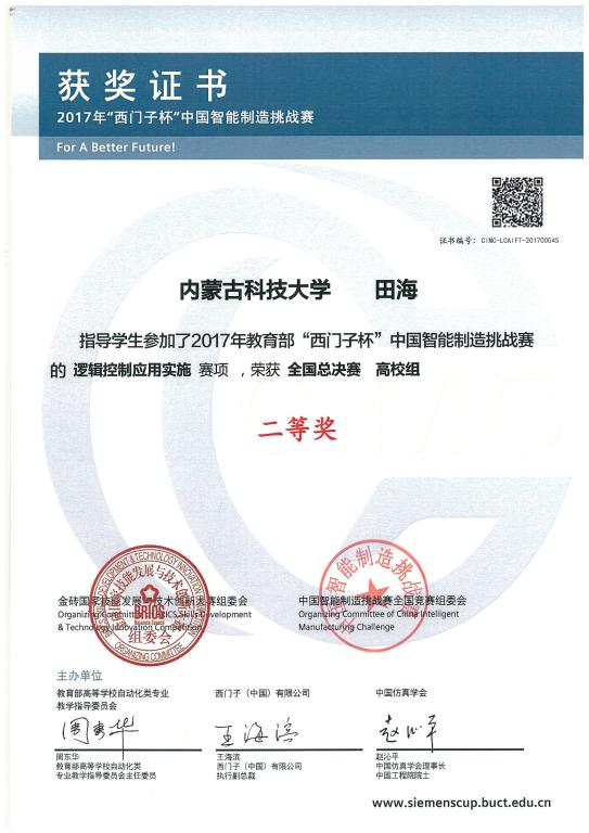 2017年8月24日至30日,由教育部高等公司自动化类专业教学指导委员会、西门子(中国)有限公司和中国仿真学会联合主办的2017年“西门子杯”中国智能制造挑战赛总决赛在上海应用技术大学举行。经过全国12个分赛区的初赛选拔,来自包括公司、同济大学、华中科技大学、北京科技大学、北京理工大学、东北大学等133所高校的600多支队伍参加了总决赛的比赛。