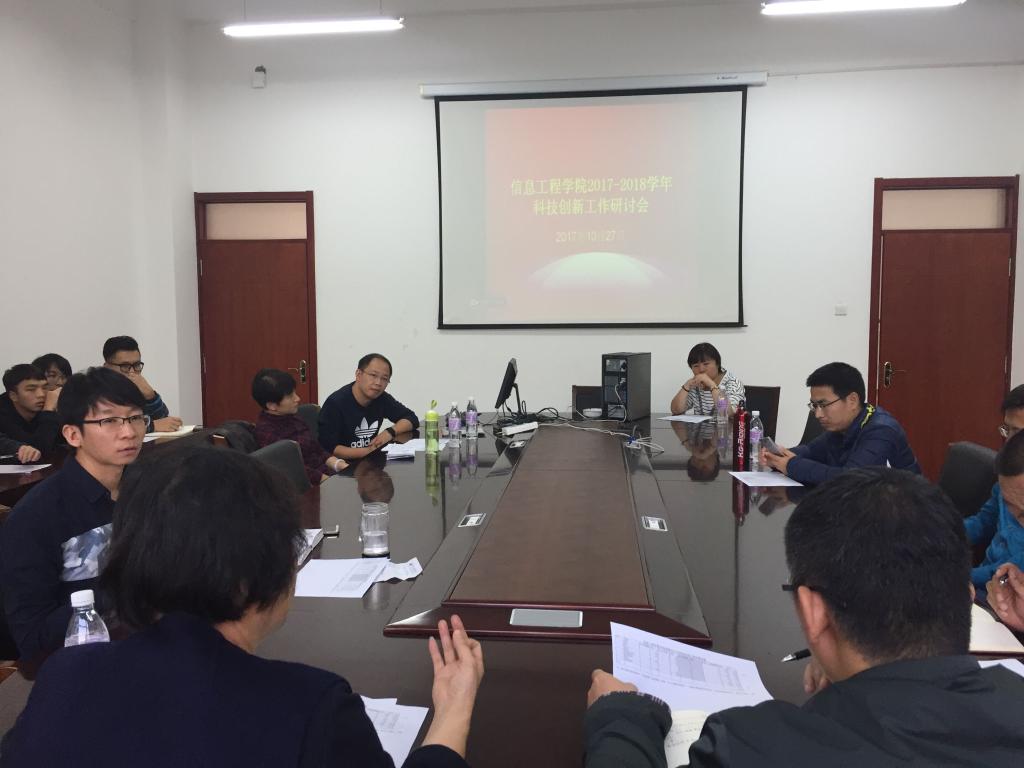 科技引领方向,创新带动发展,信息工程公司2017-2018学年科技创新研讨会于2017年10月27日下午16时在逸夫楼F203召开。公司党总支书记崔桂梅教授,党总支副书记、副经理段志峰老师,团总支书记刘新老师及创新创业社团的师生共同参加了本次研讨会。