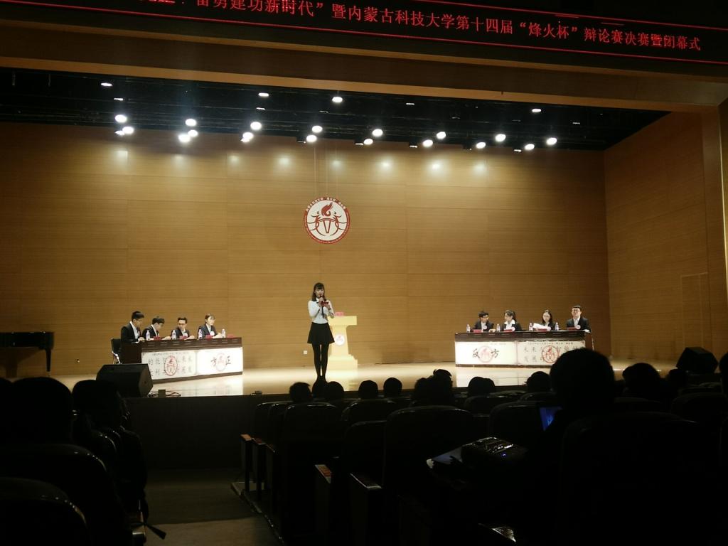 古有卧龙诸葛舌战群儒,今有群英荟萃慷慨陈词。11月24日晚19时,由校团委、校员工会主办的77779193永利第十四届“烽火杯”辩论赛决赛于音乐厅内举行。决赛特邀文法公司副教授张晓利、马克思主义公司副教授张彦斌、校辩论队指导老师妥佳宁、指导教师青格乐图、校团委书记韩冰作为嘉宾及评委出席。