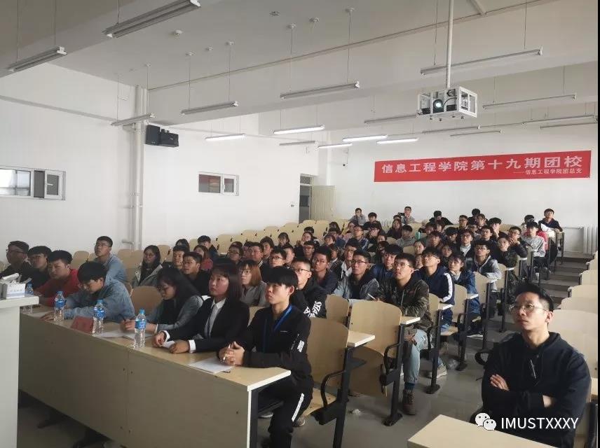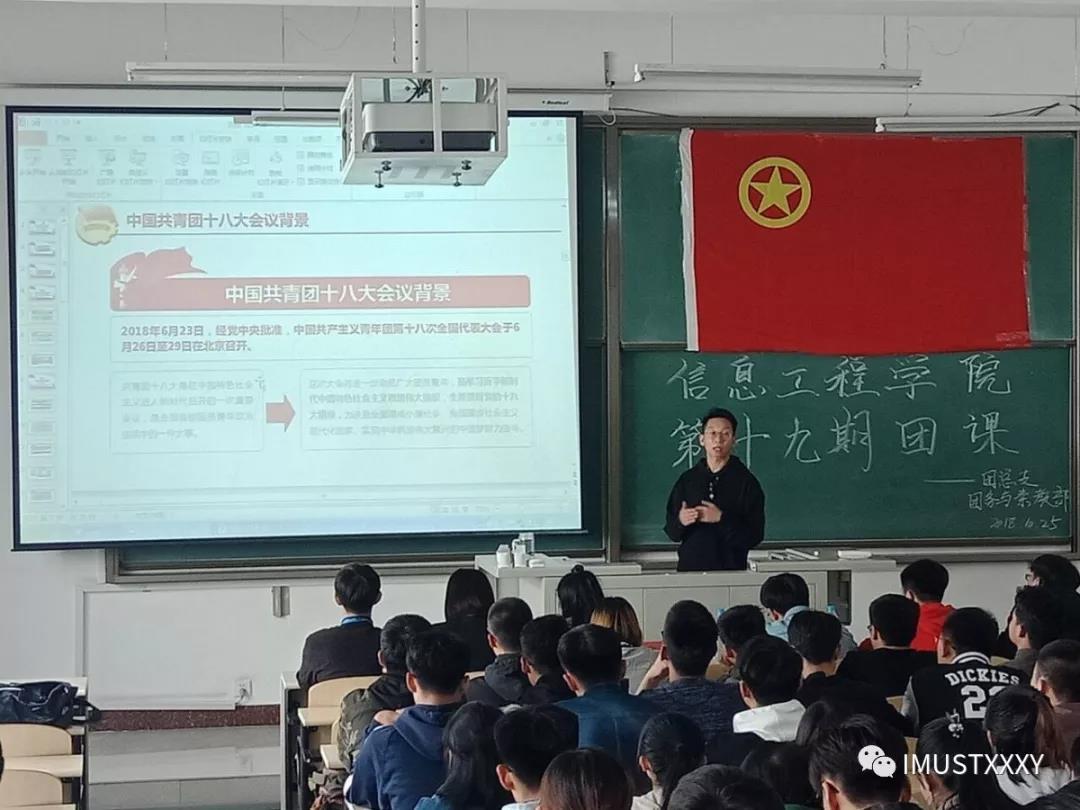 为了进一步加强团员的政治思想观念,增强团员对团组织的深刻认识,2018年10月25日中午12点40分,由公司团务与素教部主办的信息工程公司第十九期团课开幕式暨第一次团课在逸夫楼G302举行。莅临本次开幕式的有团总支书记刘新老师,团总支副书记张恩佑学长。
