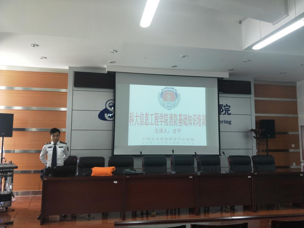 2018年11月22日下午2点30分,信息工程公司消防安全知识讲座于逸夫楼F302和G203教室同时举行。本次讲座由包头市消防科技中心讲员刘磊主讲,信息工程公司全体老师和同学代表参加了本次会议。