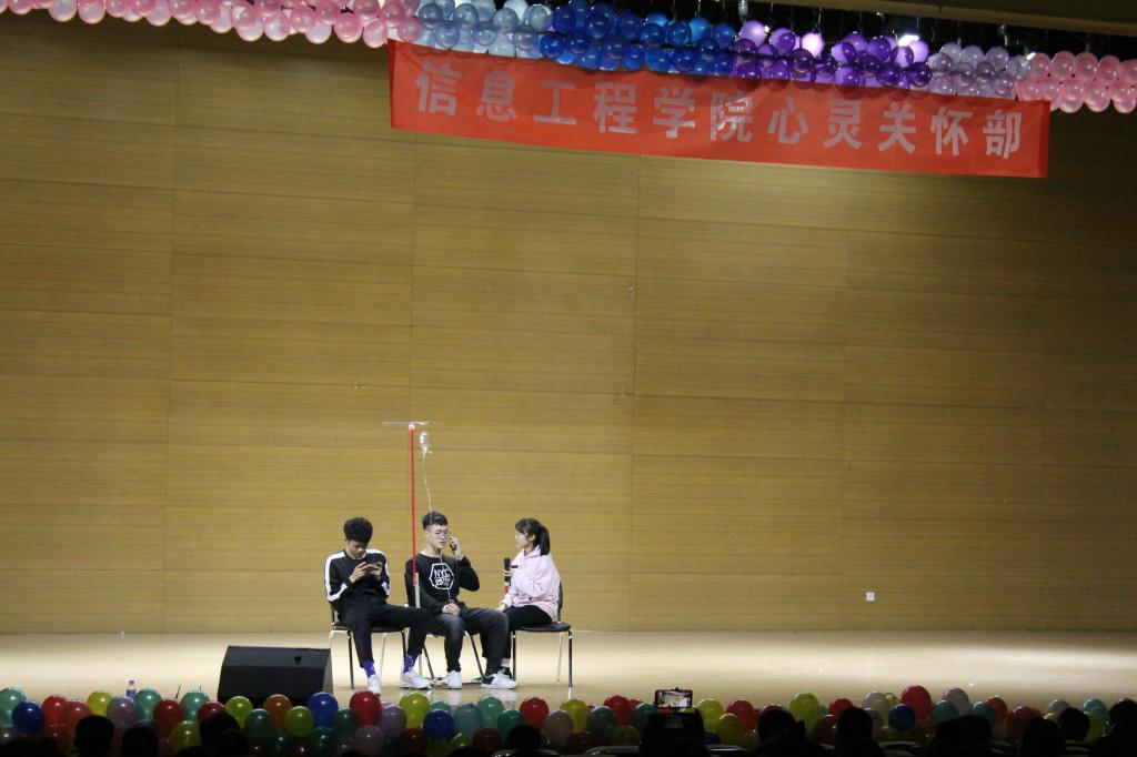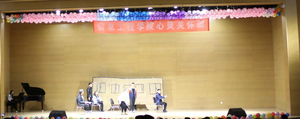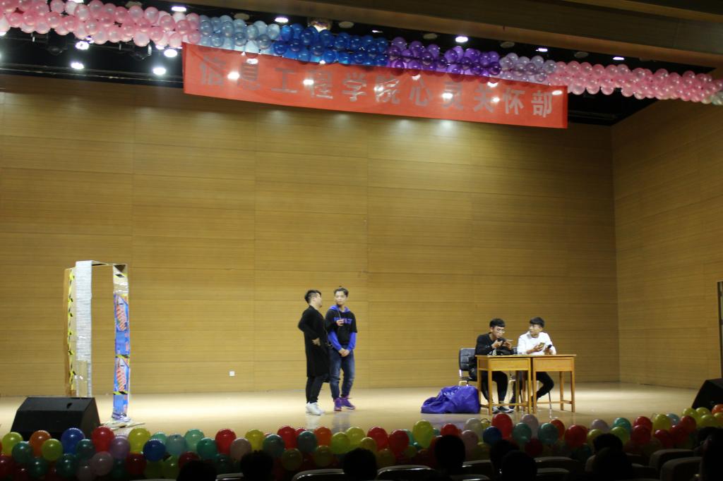 为活跃校园文化气氛,展现当代老员工积极向上的健康风貌,同时提高公司员工综合素质和艺术修养,丰富课余文化生活,信息工程公司老员工自律委员会心灵关怀部于2018年11月29日晚7点,在公司音乐厅组织举办了"星光璀璨"心理话剧决赛,本次比赛由通信工程、测控技术与仪器、自动化和软件工程这四个专业进行比拼。本场比赛的评委由信息工程公司学工办各位老师、stage话剧社社长和腾飞艺术团团长组成。这是一场关于心灵的盛宴,信息工程公司全体大一同学观看了这场比赛。