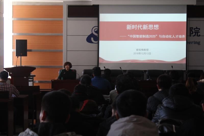 习近平总书记在党的十九大报告中号召“加快建设制造业强国,加快发展先进制造业”。为响应党和国家的号召,增强师生的理想信念教育,培养师生的使命担当意识,2018年12月27号下午2:30,公司党总支书记崔桂梅教授在逸夫楼F302讲授了主题为“新时代新思想--中国智能制造2025与自动化人才培养”的思政理论课。自动化专业教师及员工,学团办所有老师聆听了课程。