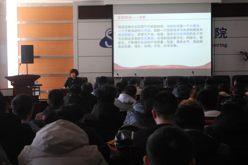 崔书记先介绍了智能制造的背景,我国是制造大国,但不是制造强国,要想实现到2025年中国制造业迈入制造强国行列,离不开智能制造。接着崔书记介绍了智能制造的演变及发展,随后她运用自己的专业知识为广大师生深入浅出的介绍了新一代智能制造的构成。