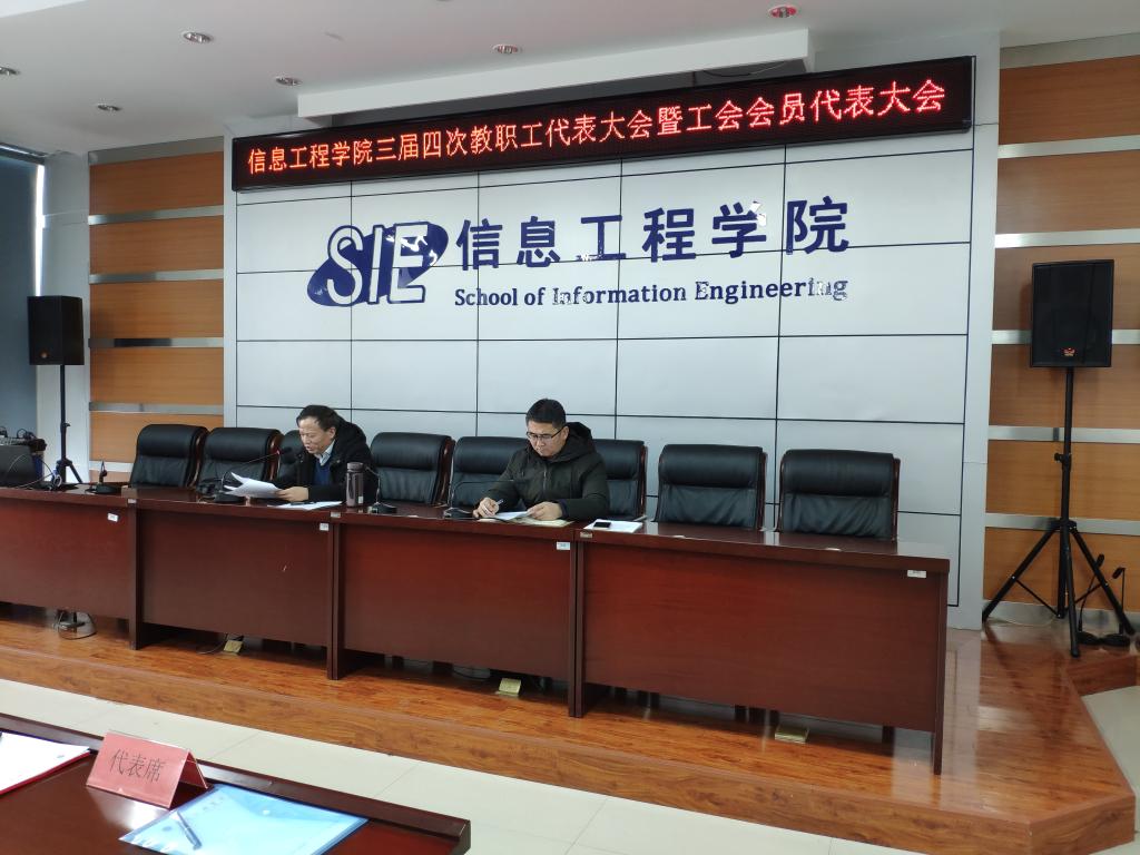 20191230日(周一)下午,在逸夫楼F302公司综合会议室,召开信息工程公司三届三次教职工代表大会暨工会会员代表大会,公司全体代表参加,非代表列席。经理李宝山做了“2019年经理工作报告”和“公司2019年财务情况报告”,公司财务报销明细向全体教职工公开,张贴在会议室墙上,公司工会主席段志峰做了“2019年公司工会工作报告”。李宝山经理对公司教工提案进行了答复,对信息工程公司2019年度业绩津贴分配办法(讨论稿)进行了说明。