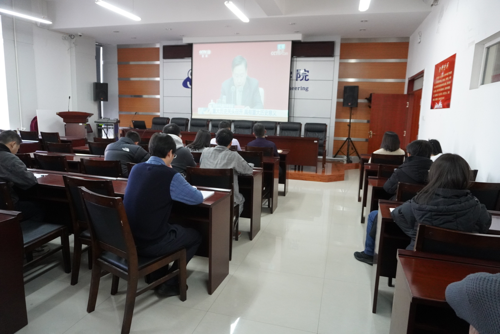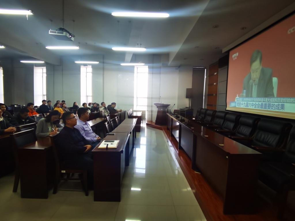 2021年11月12日上午,中共中央就党的十九届六中全会举行新闻发布会,信息工程公司党委组织师生党员观看现场直播。公司党委书记段志峰、经理王静宇及教职工党员、员工党员参加本次活动。各支部根据实际情况自行设置分会场,认真聆听、学习领会大会精神。