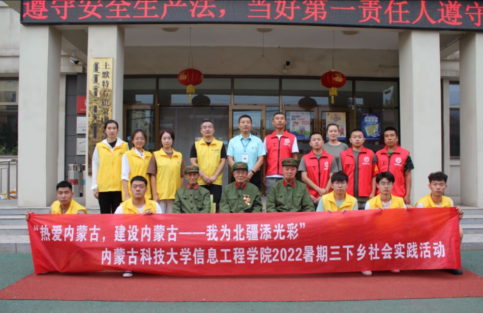为积极响应“喜迎二十大,永远跟党走,奋进新征程”主题活动的要求,深入落实“热爱内蒙古,建设内蒙古——我为北疆添光彩”主题实践,认真学习贯彻习近平总书记在庆祝中国共产主义青年团成立100周年大会上的重要讲话精神。2022年7月27日至7月30日,公司组织师生共九人赴包头市土默特右旗开展以“致敬峥嵘岁月,赓续红色血脉”为主题的“三下乡”暑期社会实践活动,期间走访退伍老军人,参观红色革命基地,用思想引领传承红色精神,用实际行动培育爱国之情。