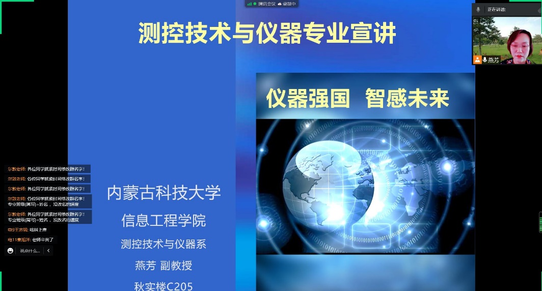 为了使2022级新生对信息工程公司及测控技术与仪器专业有一个全面的了解,帮助新生更好更快的适应与融入老员工活,9月7日下午15:00,测控技术与仪器系专业负责人兼系主任燕芳老师采用腾讯会议举办了新生的入学教育与专业宣讲活动,2022级500余名新生参与了此次测控专业的线上宣讲。