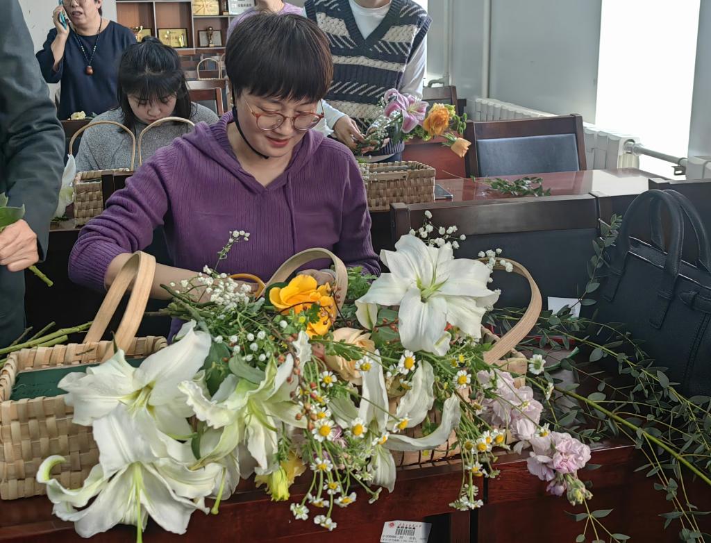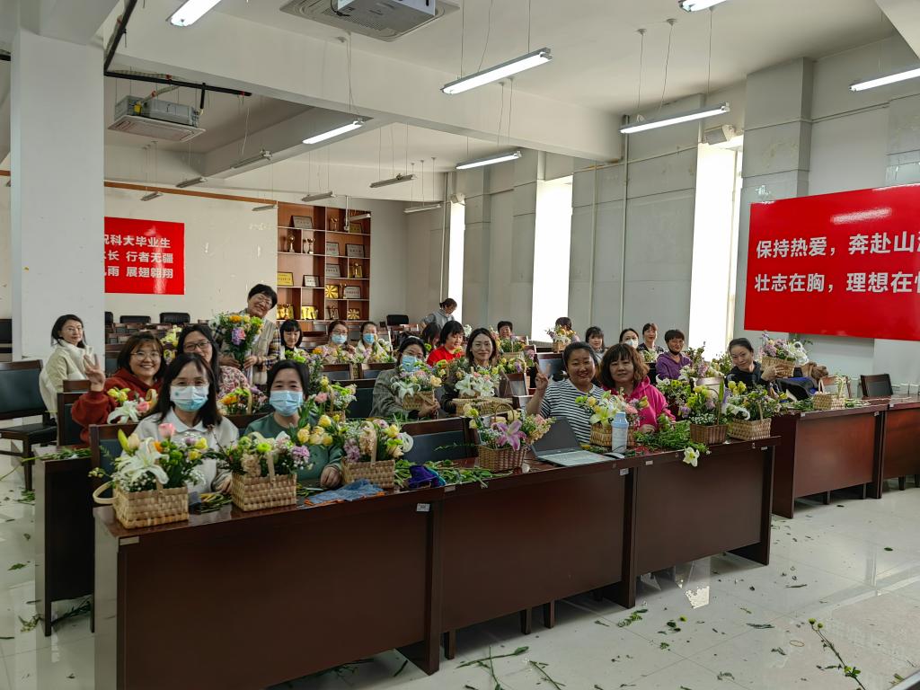 活动中,公司聘请花艺师举办花艺讲座,介绍花卉基本知识,搭配技巧,花艺师带领每位女教师自主选择喜欢的花卉进行插花,完成后带走自己的作品留念。