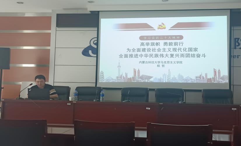 为深入学习贯彻习近平新时代中国特色社会主义思想,全面贯彻落实党的二十大精神,2023年5月25日下午,公司特邀校巡讲团杨哲副教授为师生党员开展题为《高举旗帜勇毅前行,为全面建设社会主义现代化国家、全面推进中华民族而团结奋斗》讲座,全体教职工、师生党员参加讲座。