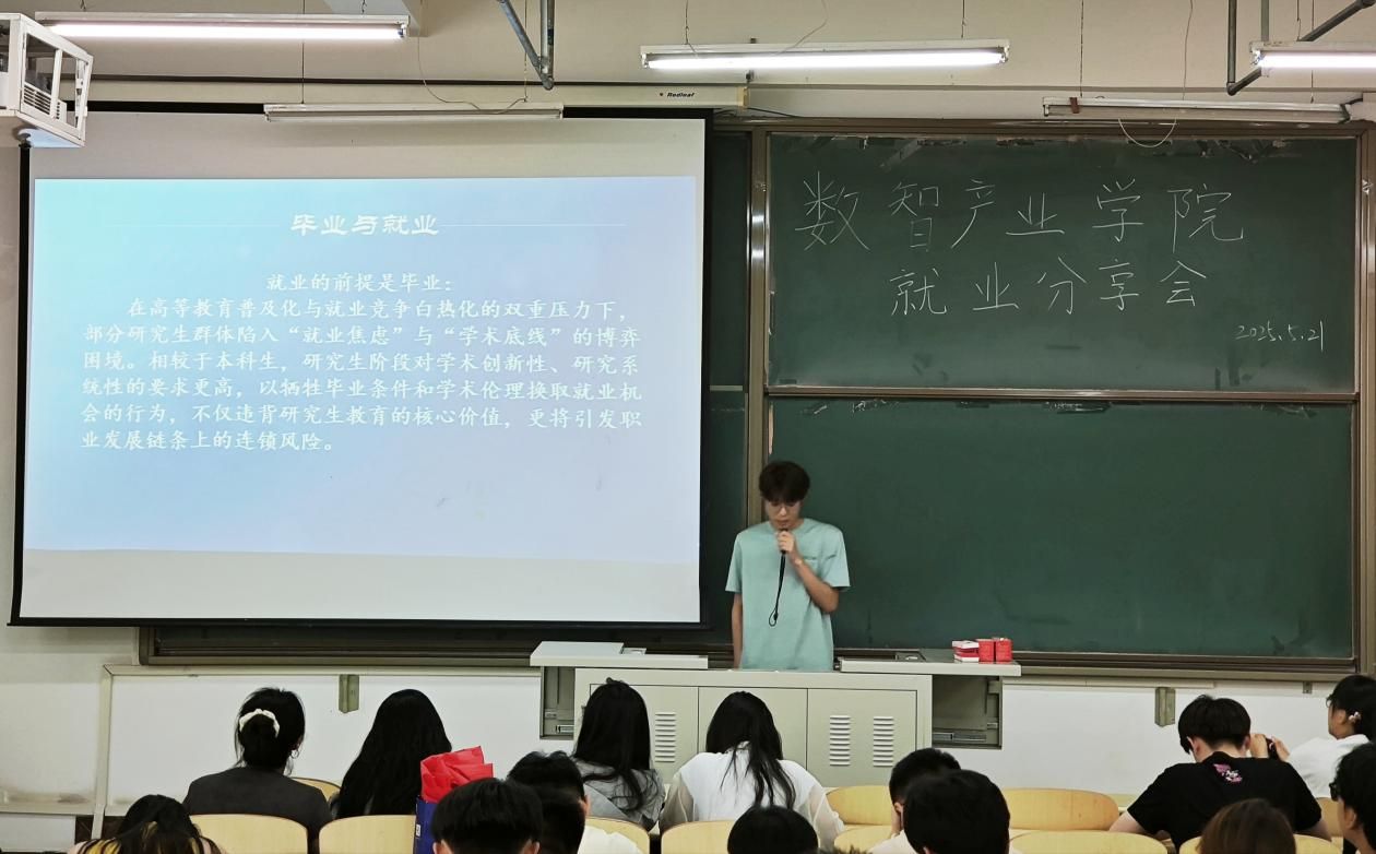 研三的5位同学依次登台,倾囊相授他们的就业经验。从职业选择、简历优化到面试技巧,再到申博流程,学长学姐们结合自身经历,深入浅出地剖析求职中的实际问题,并分享了对职业发展的独到见解。他们的分享既有实用建议,也有深刻思考,为在场学弟学妹提供了宝贵的参考。互动环节中,同学们积极提问,学长学姐耐心解答,现场气氛热烈而融洽。整场活动干货满满,赢得了阵阵掌声,为低年级同学的职业规划指明了方向。