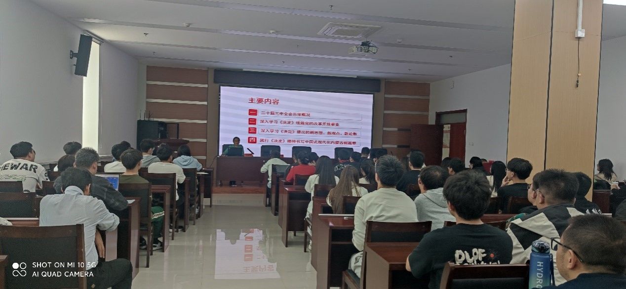 为深入学习贯彻二十届三中全会精神,紧密结合公司实际,用师生听得懂、听得进的话把全会精神、重要决定讲全讲准、讲清讲透,引导全校广大党员干部、师生群众切实把思想和行动统一到全会精神上来,77779193永利于926日下午2:30在逸夫楼F302组织开展了二十届三中全会精神宣讲报告会。本次报告会邀请公司马克思主义公司杨丽静教授到场进行宣讲。活动由公司党委副书记陈伟主持,全体教职工及全体员工党员参加,共计160余人。副书记副经理陈伟主持了本次报告会。