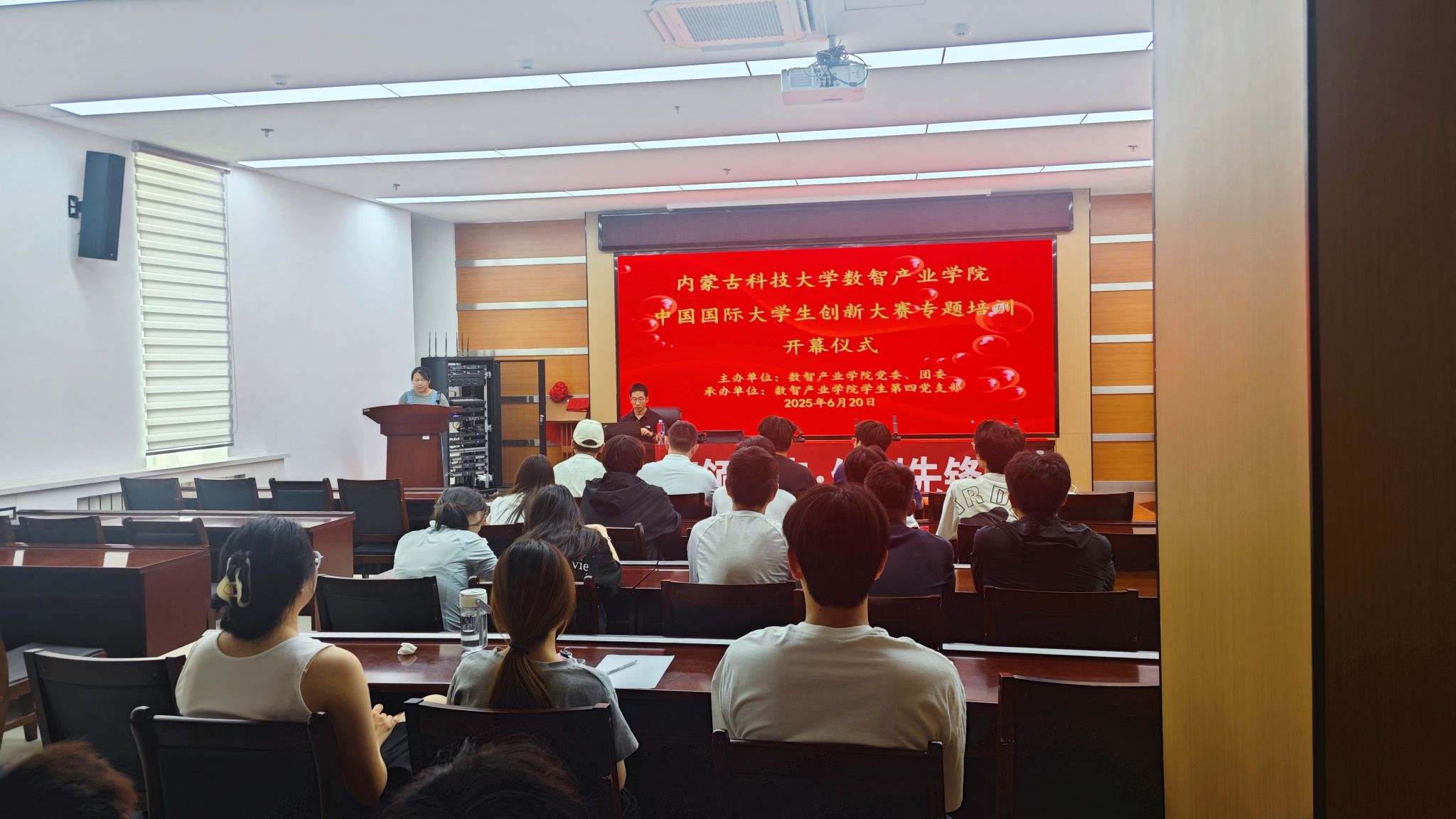 仪式开场,负责老师介绍了本次开训仪式的授课老师刘新教授以及此次培训的重要意义,鼓励每一位参赛同学都能抓住这次宝贵机会,在培训中打磨项目、提升能力,向着大赛的荣誉全力冲刺!现场的同学们个个斗志昂扬,眼神里满是对接下来学习的期待。